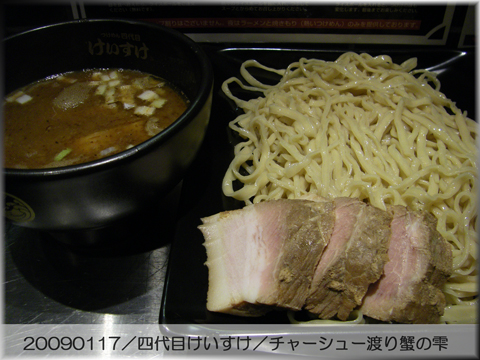つけめんの方は小麦ふすま入りで、ちょっと凸凹の茶色麺。