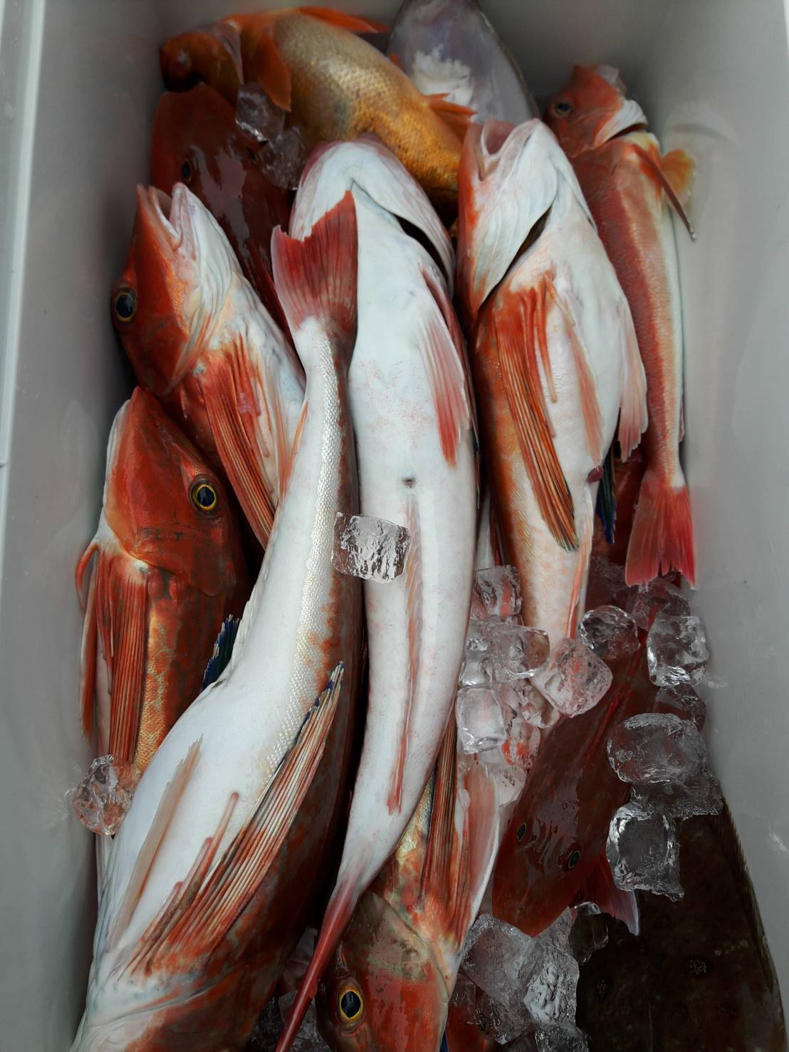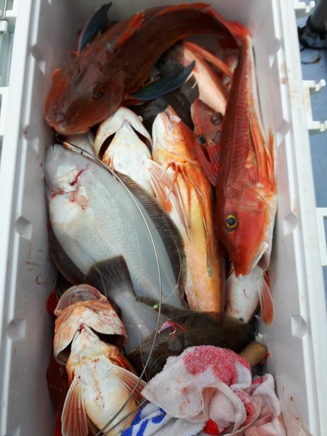 本日も水深160m前後を狙い風波強く釣りづらい状況でしたが潮型も良く飽きずに乗り流しが効いて皆さんお土産になりました(^^)v