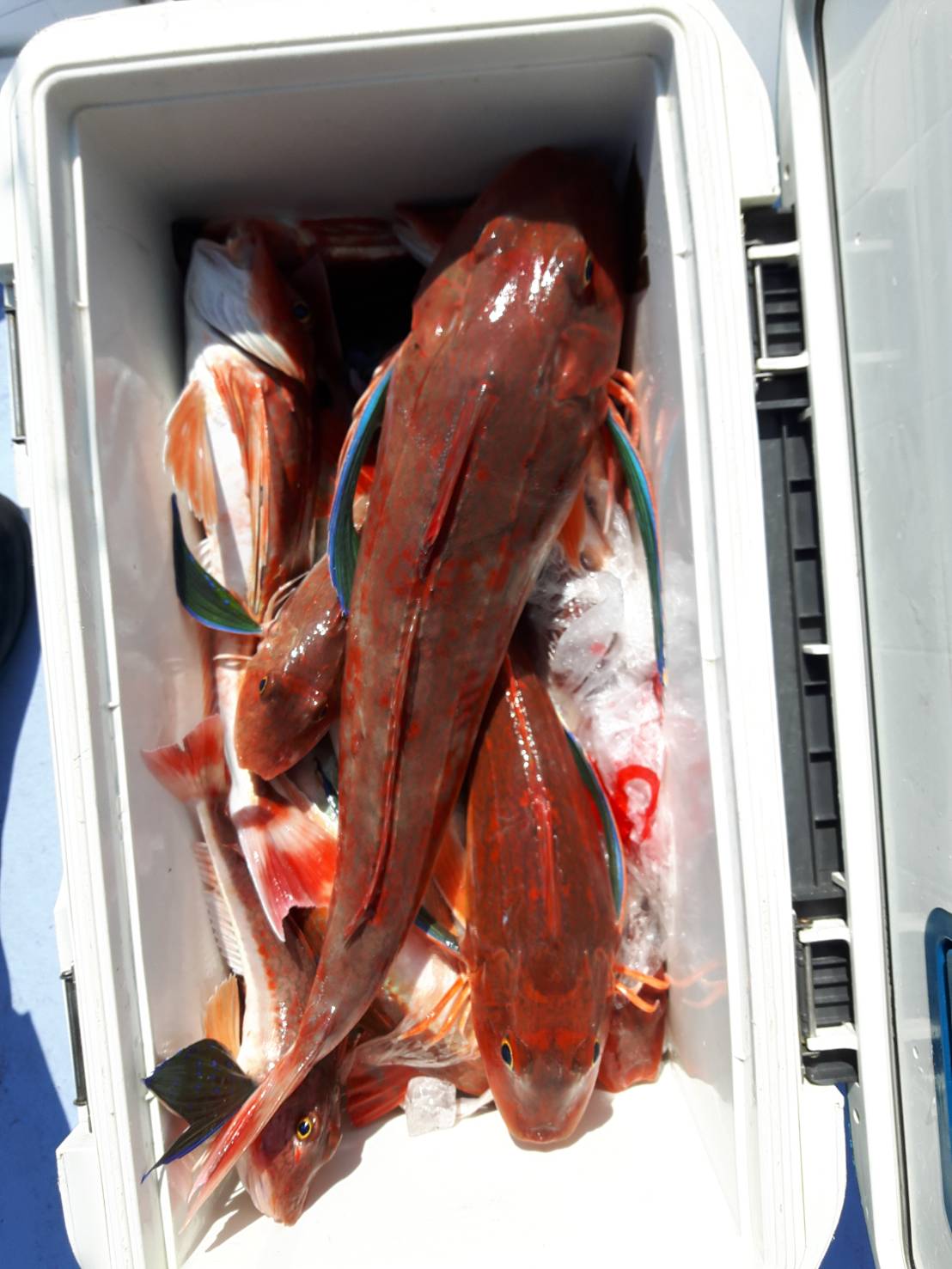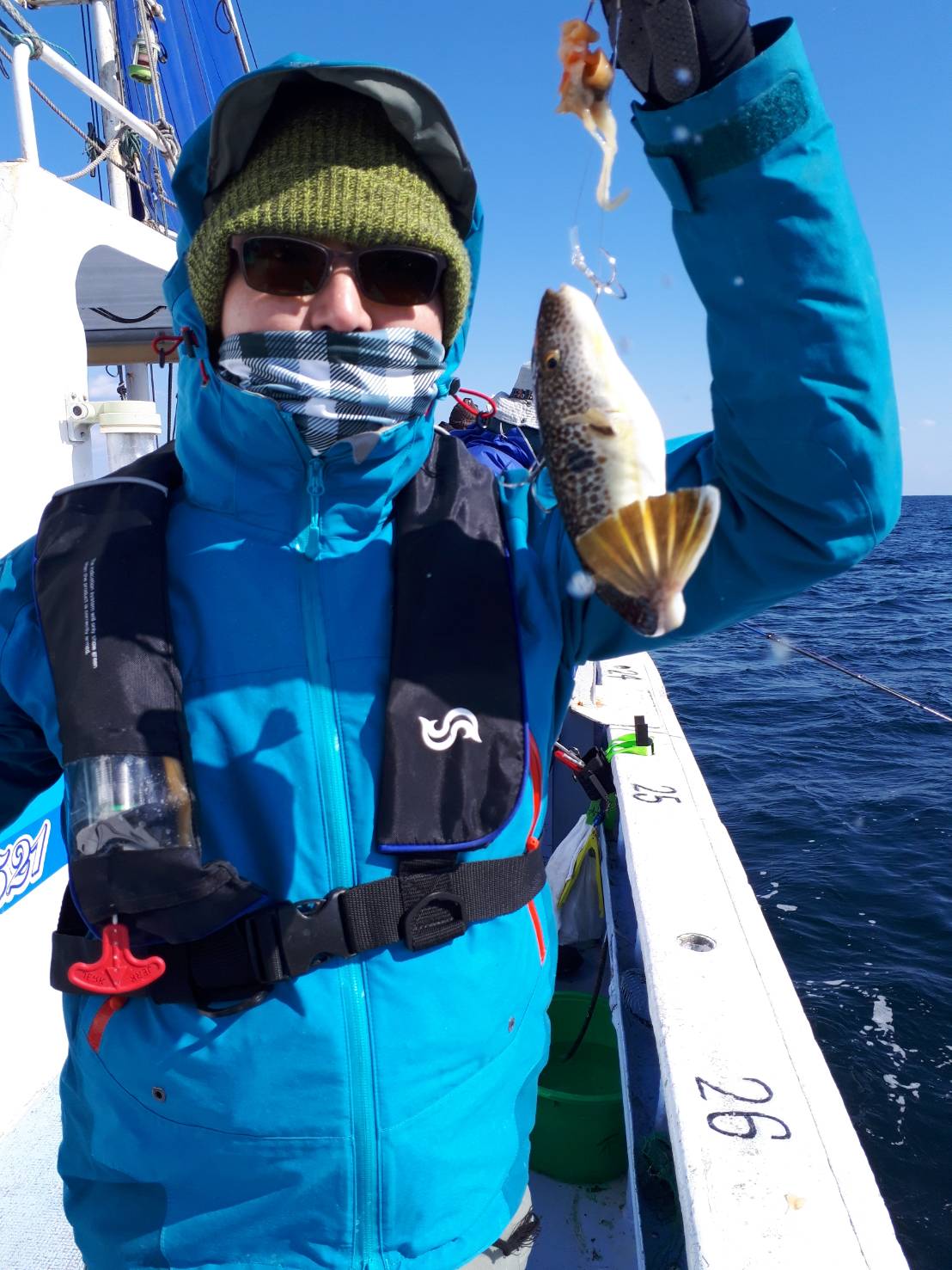 中盤に31メートルの平場でポツポツ🐡掛かるポイントを発見し、暫くは船中で誰かしら2、3人ずつ巻き、🐡いつの間にバタバタ上がる状況になりました🎵。