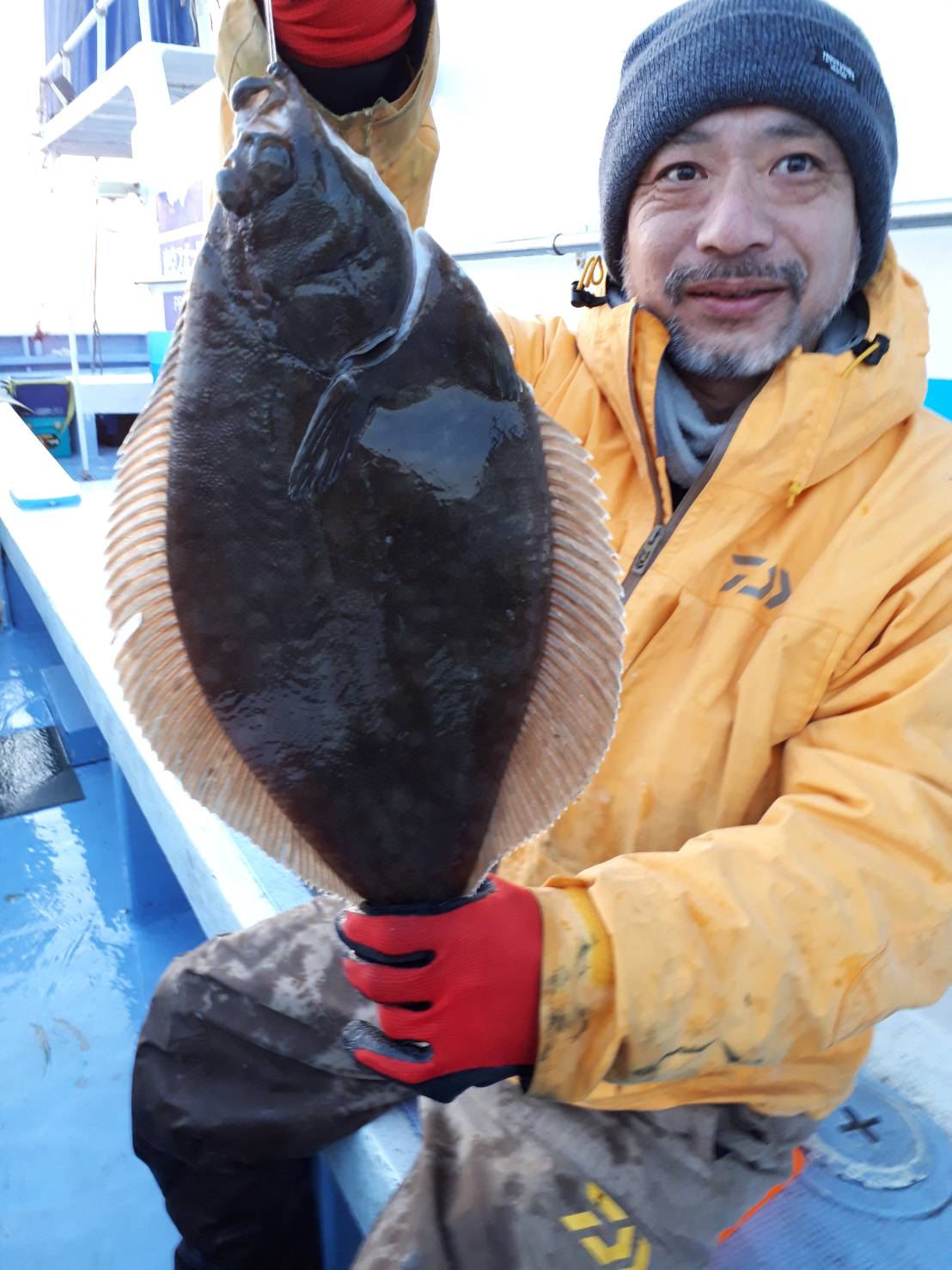 水温低下でイシガレイも食い活発❗、よい土産です🎵。
