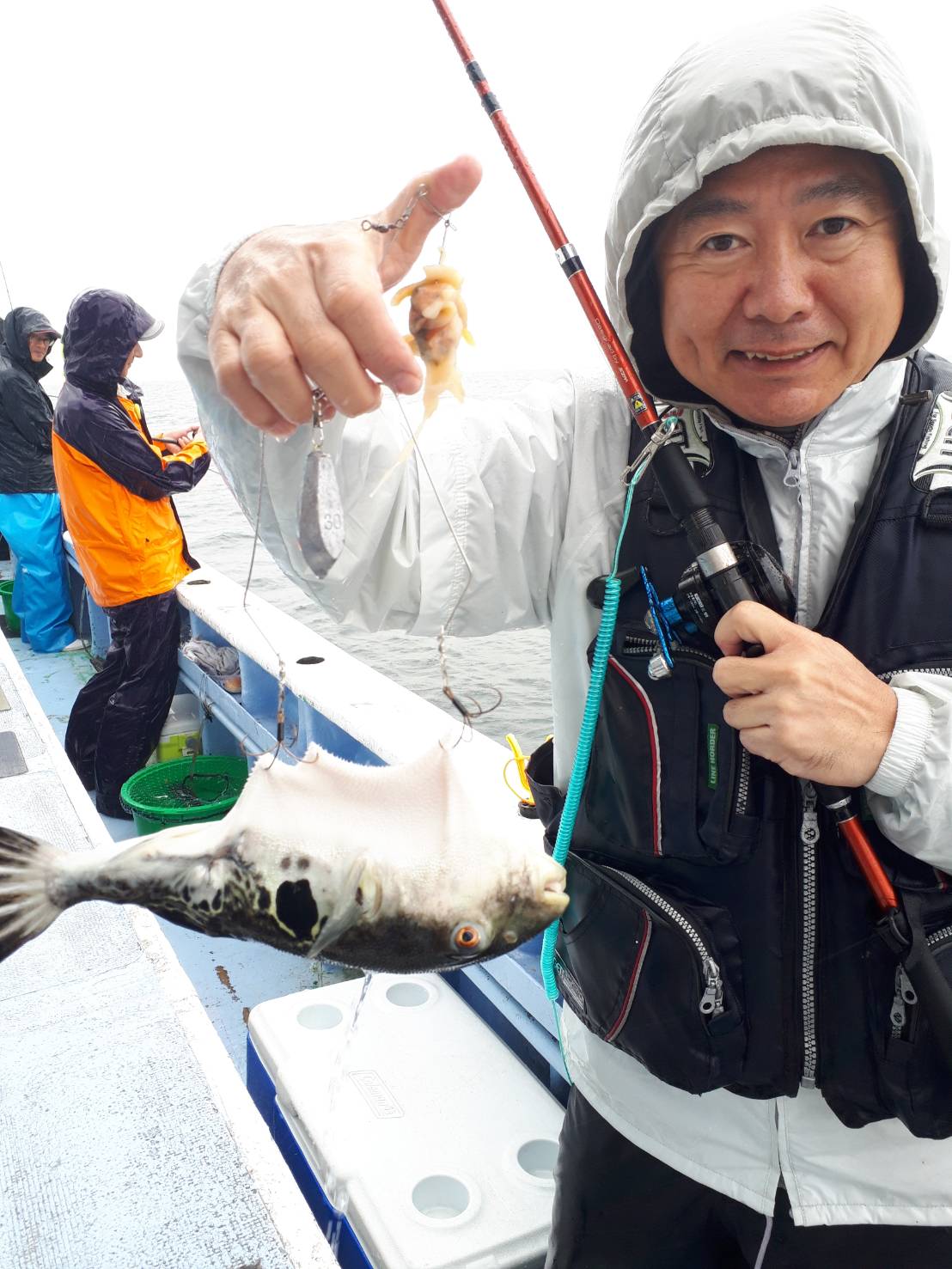 🐙は好調に掛かり、すぐにほとんどのお客さんが持つ事が出来ました🎵。しかし🐡は型程度でダメなので、何ヵ所か探ったところ、平場の27メートルでポツポツ釣れだしました。
