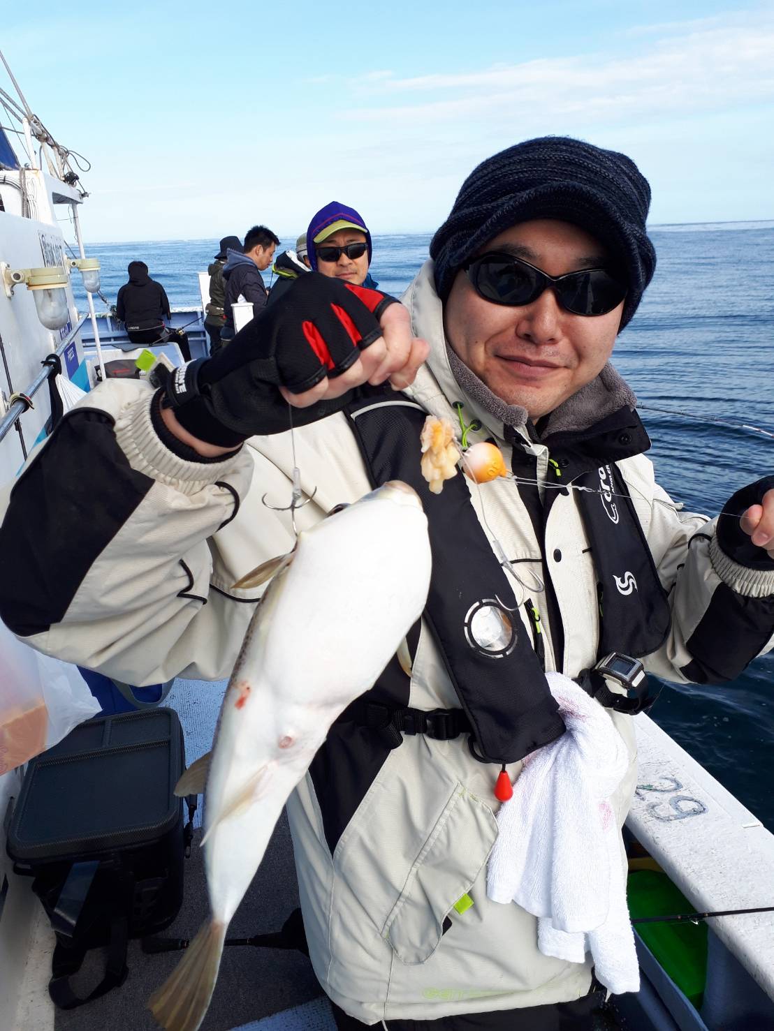 前半から小型ながら真鯛が上がり、ゲストのアタリもポツリポツリと掛かり始め、活きエビ効果で幸先まずまずのスタート。しかし、中盤移動を繰り返すも良いポイントに入れず苦戦しました(*_*)