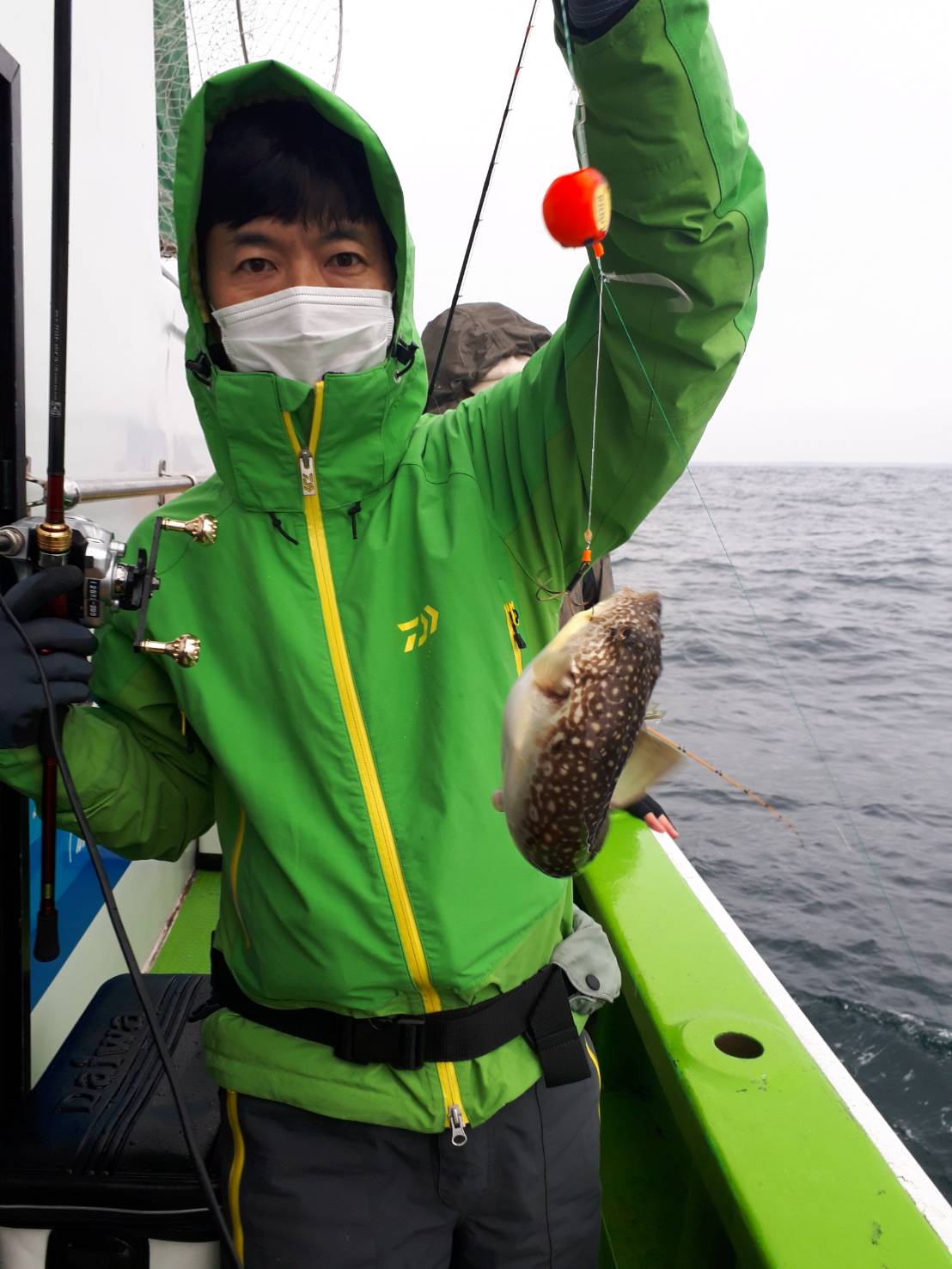 低気圧と前夜の大風の影響で🌊高く、🐡が釣れるか心配でしたが、砂底平場のポイントを周り、大型🐡でお土産は取れました。
