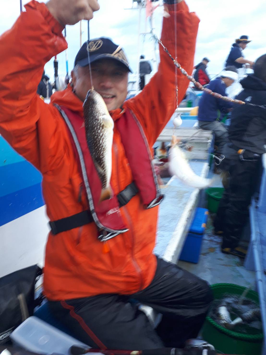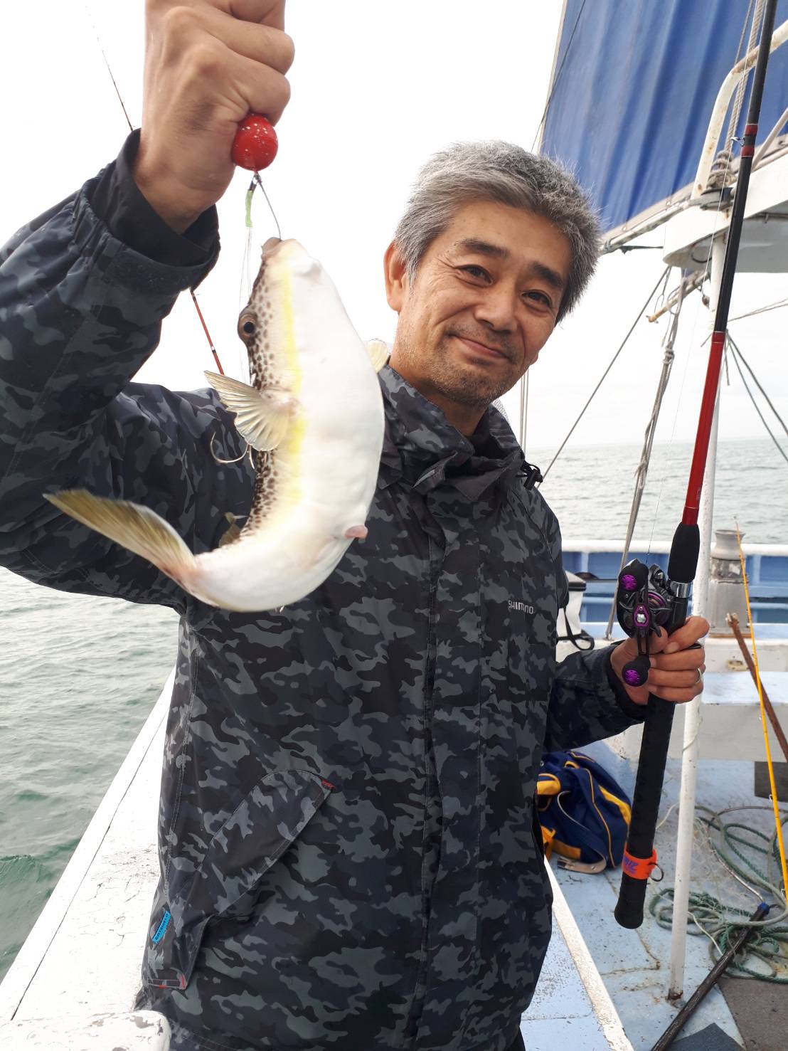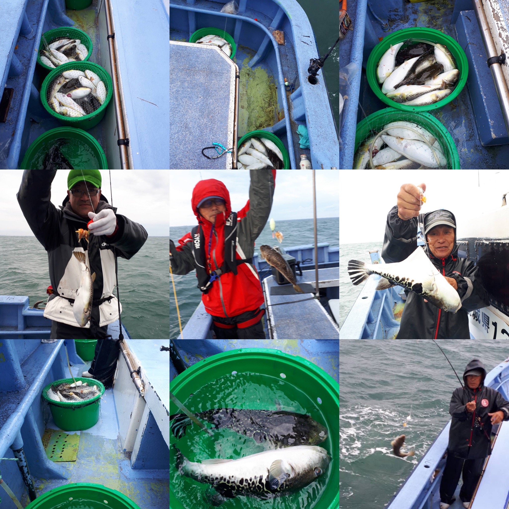・ショウサイフグ25ー40Cm…4ー30匹(2隻の高低)。 他トラフグ3匹、サバフグ、イナダ、ハナダイ、ムシガレイ、ガンゾウ。