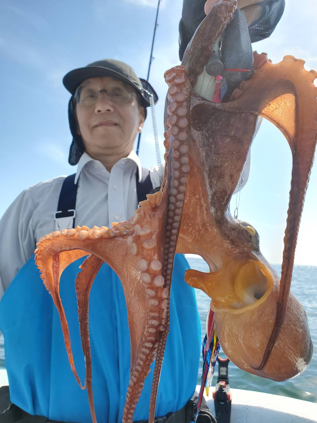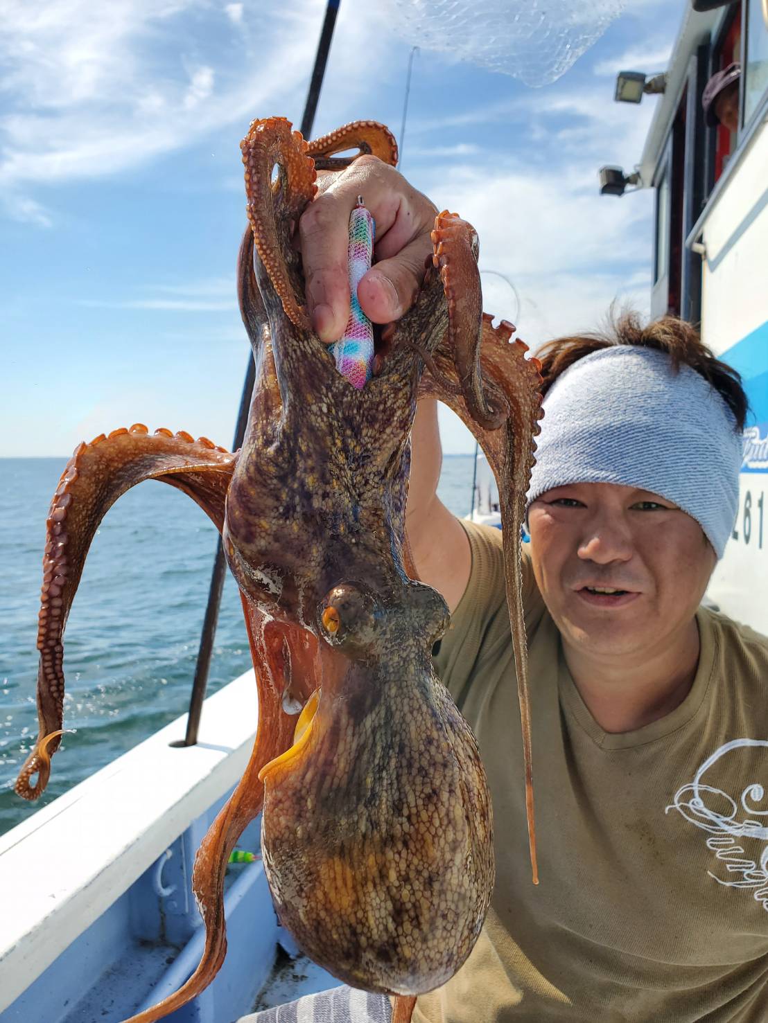 ・仕掛け情報 オモリ50〜60号。 エギテンヤ3.5〜4号。 デビルクラッカーなどの🐙専用ワームタックルもお薦め。 タコエギは1個より2個を専用スナップを用いて装着するのがお薦めです(理由として、アピール性高くなる、バラシが激減する)。 竿は、強めのジギングロッド、イカ竿、ビシアジ竿等勧めます。カワハギ竿やフグ竿も使用可。 ダメなのがヒラメ竿やマダイ竿、一つテンヤ竿、シロギス竿。柔らかい竿はダメです。 リールは強い力のあるもの、ノーマルタックルで五目やヒラメが釣れるリールなら問題無いです(毎年小型リールで🐙掛かって巻けない、困っているお客さん必ず見ます😊)。 とりあえず、現在のポイントは根掛かりは少ないはず