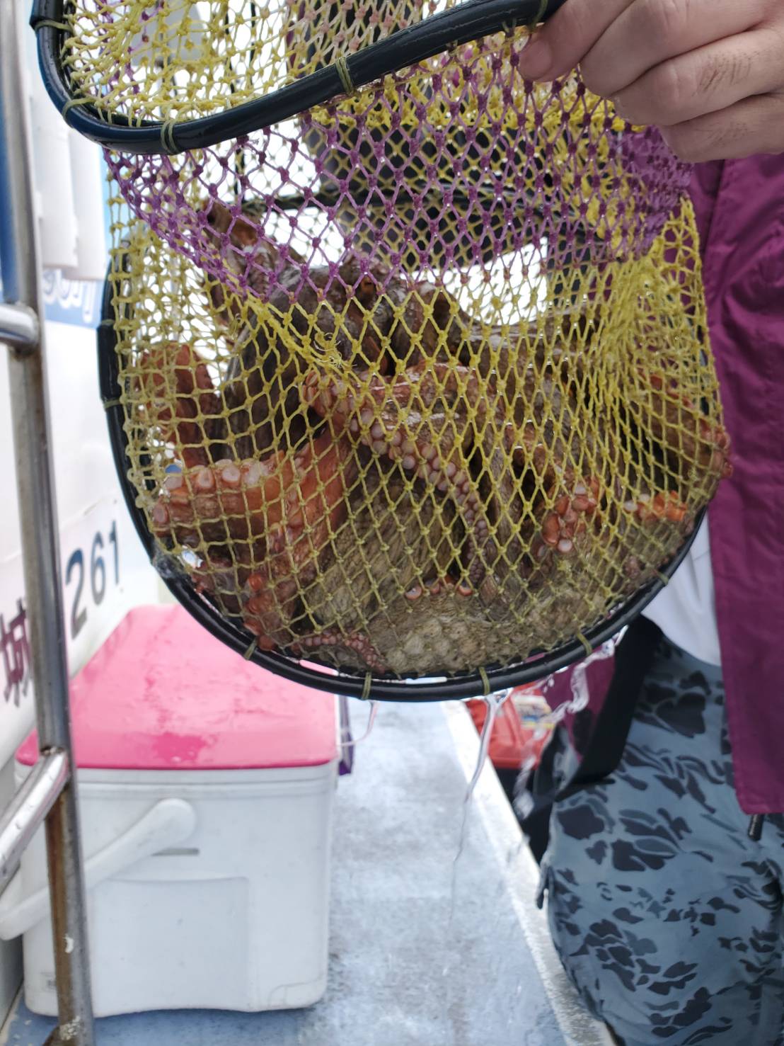 ・朝のうち良いナギで好調に釣れ始めるが中盤海🌊波悪くなり早上がりです(ToT)/~~~、けどタコ🐙、好調です。最後までやれば二桁は釣れましたよ。今秋の味覚地だこ一度食べてみて下さいね🎵大好評ですよ😃遊び来てね❗