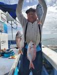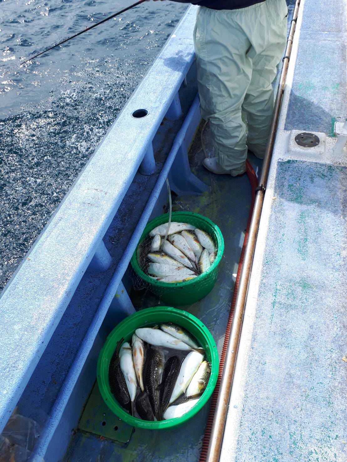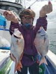 本日は少し波があり釣りづらい状況でしたが前半から7点8点掛けの多点掛け多く好調でした🎵 中盤までスジイカが多かったが後半はムラサキイカの乗りも良くツノのサイズが合う方は30前後釣りましたね(^^)v 皆さん直結での釣りでしたが波もあったので乗っても取り込みで外れる方も多かったようです。状況によってブランコに変えたりしないとダメですよ〜(^^) 今年はロングランでまだまだ楽しめそうでね💕