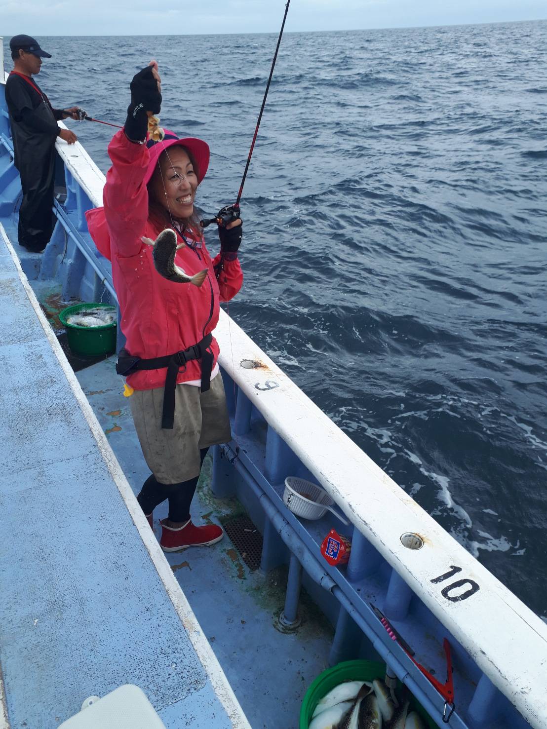 本日も沖のムラサキイカ狙いに出船🎵 本日も風波があり釣りづらい中で、サバの邪魔もあり、昨日のようには釣れませんでした(T_T) 直結で頑張ってる方もいましたが乗っても波があるので外れてしまう状況でしたので苦戦してましたね。こういう場合はスッテのサイズを上げて4号、5号のブランコでやればサバの邪魔も抑えられます。 状況によって臨機応変に対応した方は数も伸ばしましたよ🎵 イカはいるので心配ご無用です(^^)v