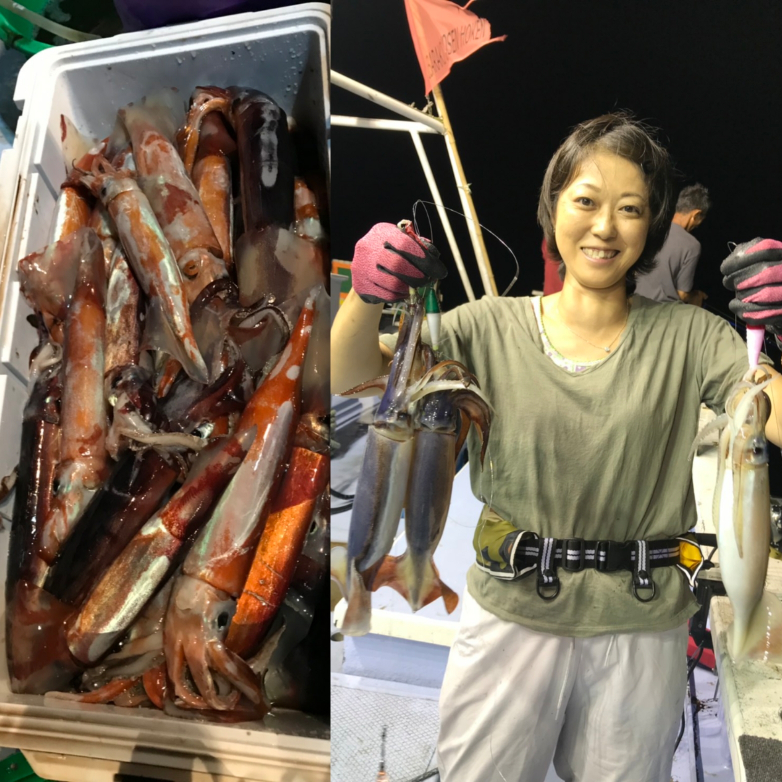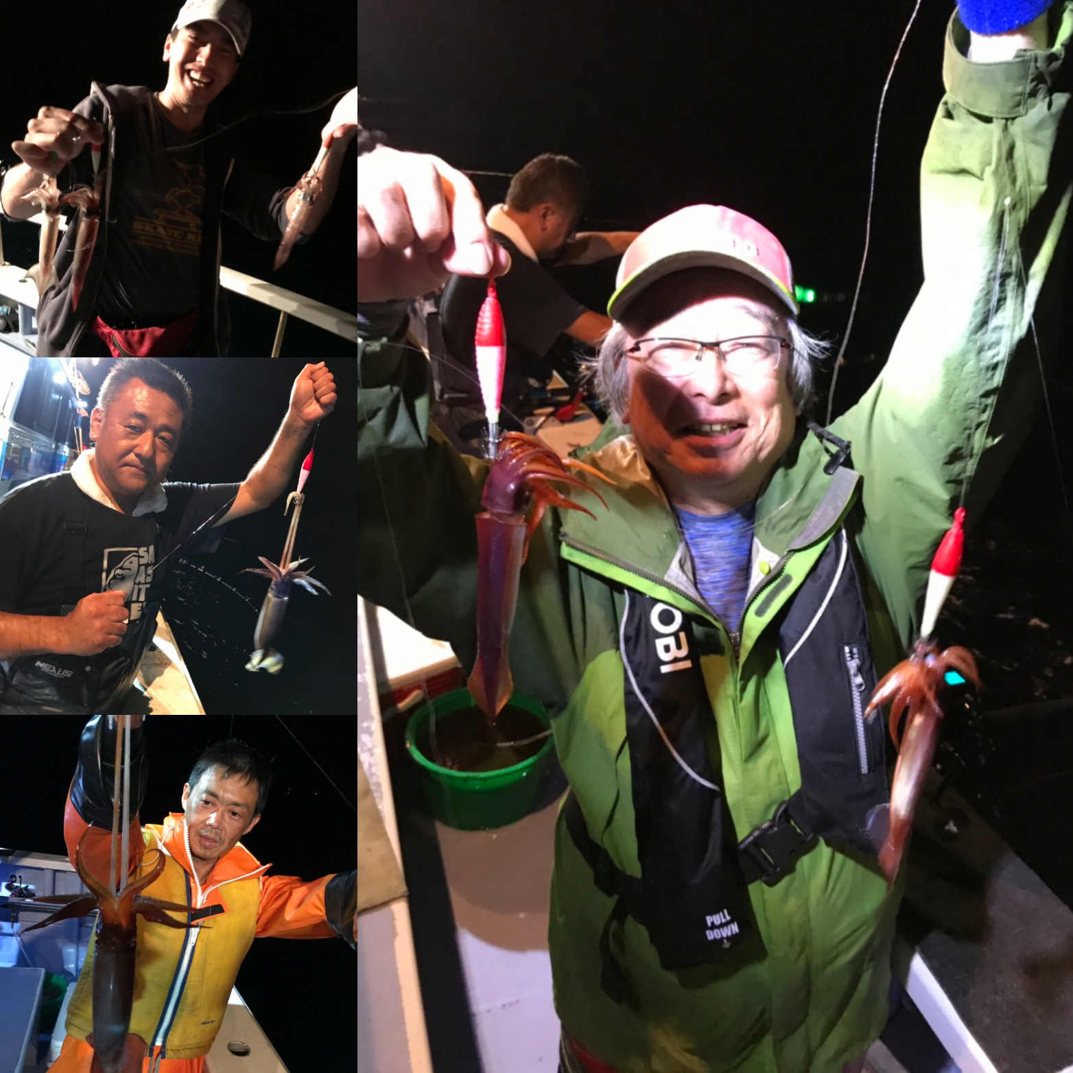本日も沖のムラサキイカ狙いに出船🎵 序盤から入れ乗りでお祭り騒ぎ💕 8時にはクーラーに入らない方も出ましたので、ある程度の大きさのクーラーは必需品ですよ‼️ しっかりクーラーに入れて新鮮に持ち帰って下さい😄 もはや皆さん数も数えられない状況(笑) いや〜楽しいですね(^^)v 綺麗な服は着て来ないで下さいね(笑)