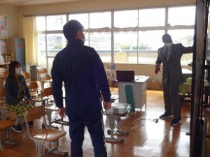 先日行った「情報教育研修」成果を確認。 全職員でパソコンを用意し, それぞれ離れた場所で職員会議を行いました。 先生方の顔を見ながら会議が出来ました。 延長になった休校にむけて,活用方法を検討しています。