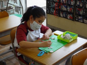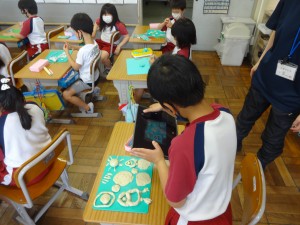 教育実習生がオンラインで自己紹介をしました。 好きなものを作っています。 宇宙に飛んでいくロケットや海底にすむ生き物。 思い思いに作っています。できあがった作品は,クロムブックで写真に撮っています。
