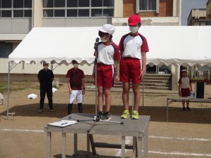 本日は,開・閉会式の練習。「実行委員長の話」や「終わりのことば」を確認しました。 当日も自信をもって行ってほしいと思います。