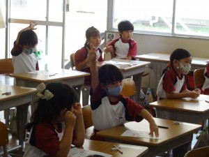 「はい!」「はい!!」 みんな,自信満々の表情です。 5年生が,視覚に障害のある方の講話を聞きました。 お話に真剣に聞き入る姿が見られました。 沢山の子供たちが,聞き終わった後,疑問に思ったことを質問していました。 講話いただいた先生,本日はありがとうございました。