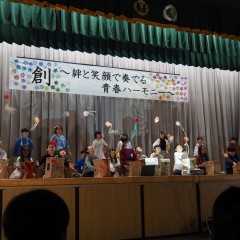 今日は令和7年度松輝祭(小中合同文化祭)が行われました。施設一体型小中一貫校の特色を生かして、小学校1年生から中学校3年生までの発表が行われました。今までの練習や学習の成果が発揮できました。一生懸命頑張る姿に、会場も盛り上がりました。お忙しい中、たくさんの保護者の方や地域の方が来校され、たくさんの拍手をいただきました。ありがとうございました。
