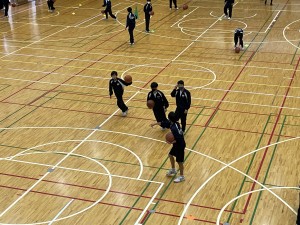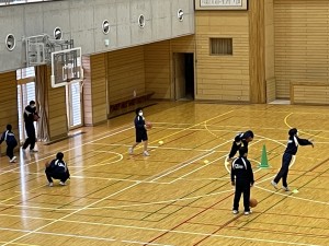 体育の授業でバスケットボールに取り組んでいました。チーム毎にゴールが割り当てられ、チームそれぞれの課題練習をしていました。シュート練習、ドリブル練習、攻め方のフォーメーション練習・・・等々に熱心に取り組む様子がコート内の雰囲気や生徒の表情に写し出されていました。