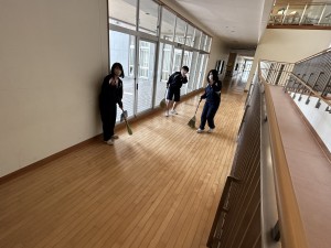 卒業証書授与式の式場となる体育館に繋がる通路の掃除や教室の飾り付けをしました。